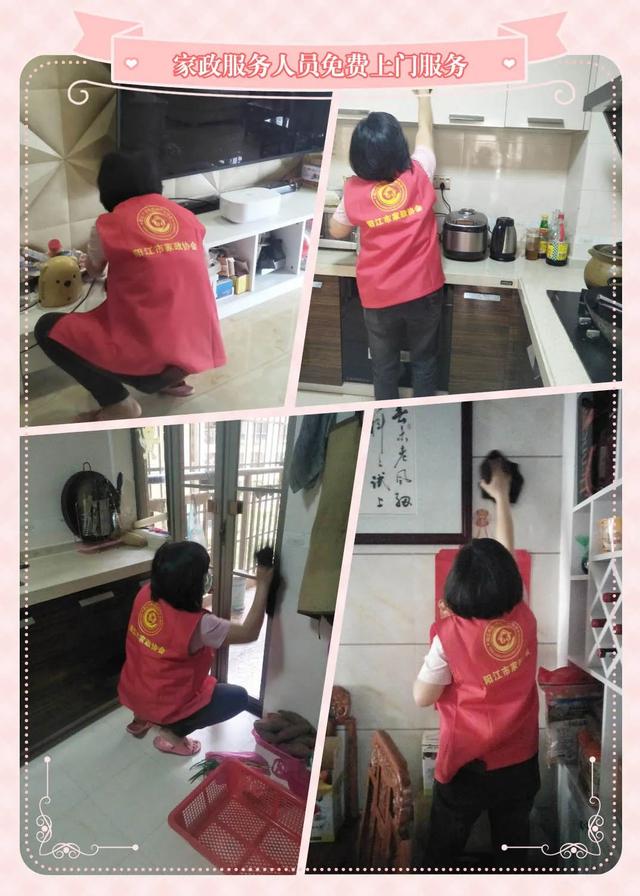 4月10日,阳江市家政行业协会选派的家政员穿着统一标识服装,佩戴口罩及手套、带着保洁工具及清洁剂上门开展家政服务,得到赴湖北医疗队队员家属的一致好评。