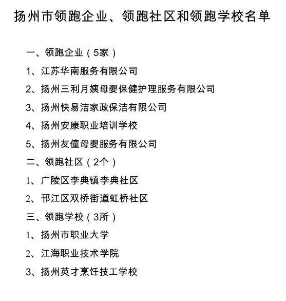 扬州市公布《关于促进家政服务业提质扩容建设“领跑者”行动重点推进城市的实施方案》